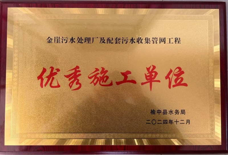 榆中縣黃河流域宛川河金崖污水處理廠及配套污水收集管網工程施工 -優秀施工單位